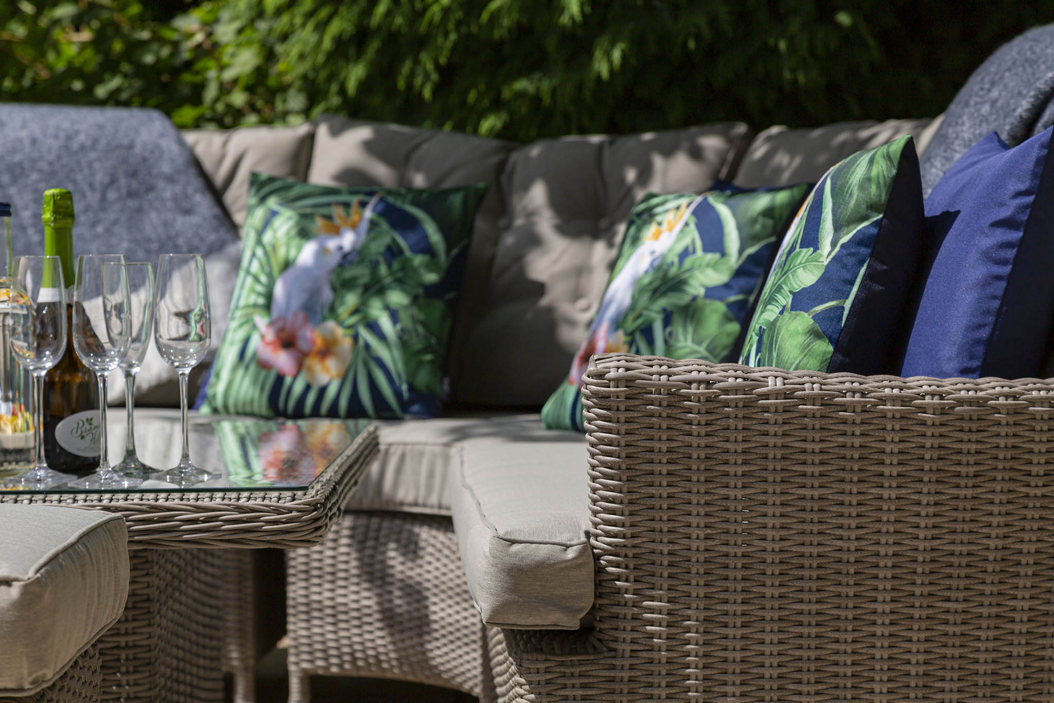 You can also add scatter cushions to Katie Blake’s plush seating, cordless lights, or other decorations to further enhance the ambiance and make your outdoor space feel like a cozy retreat.