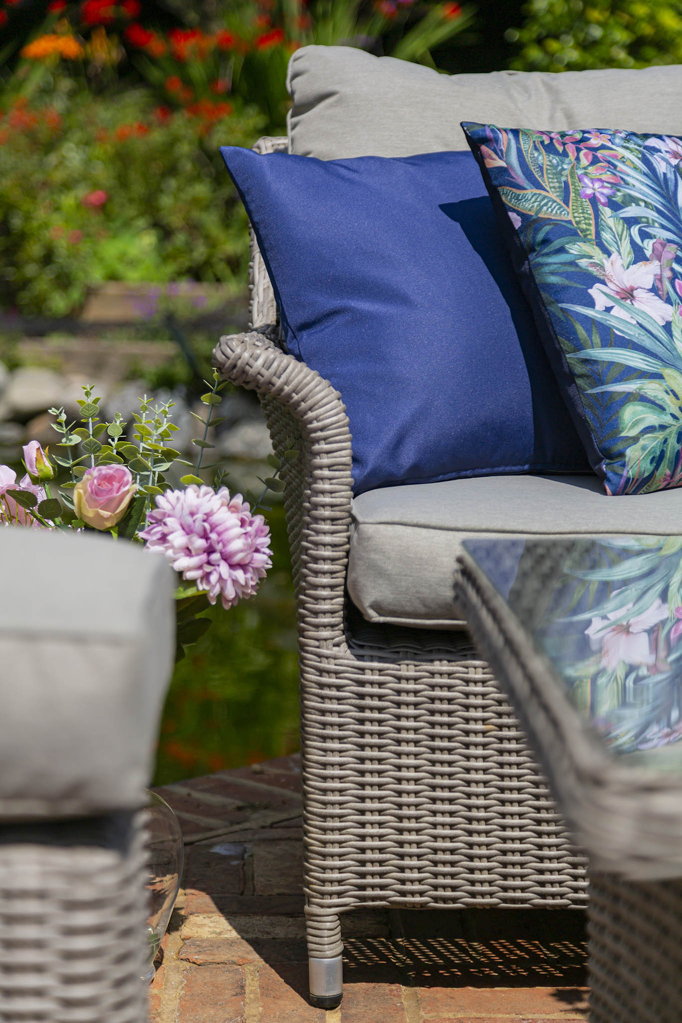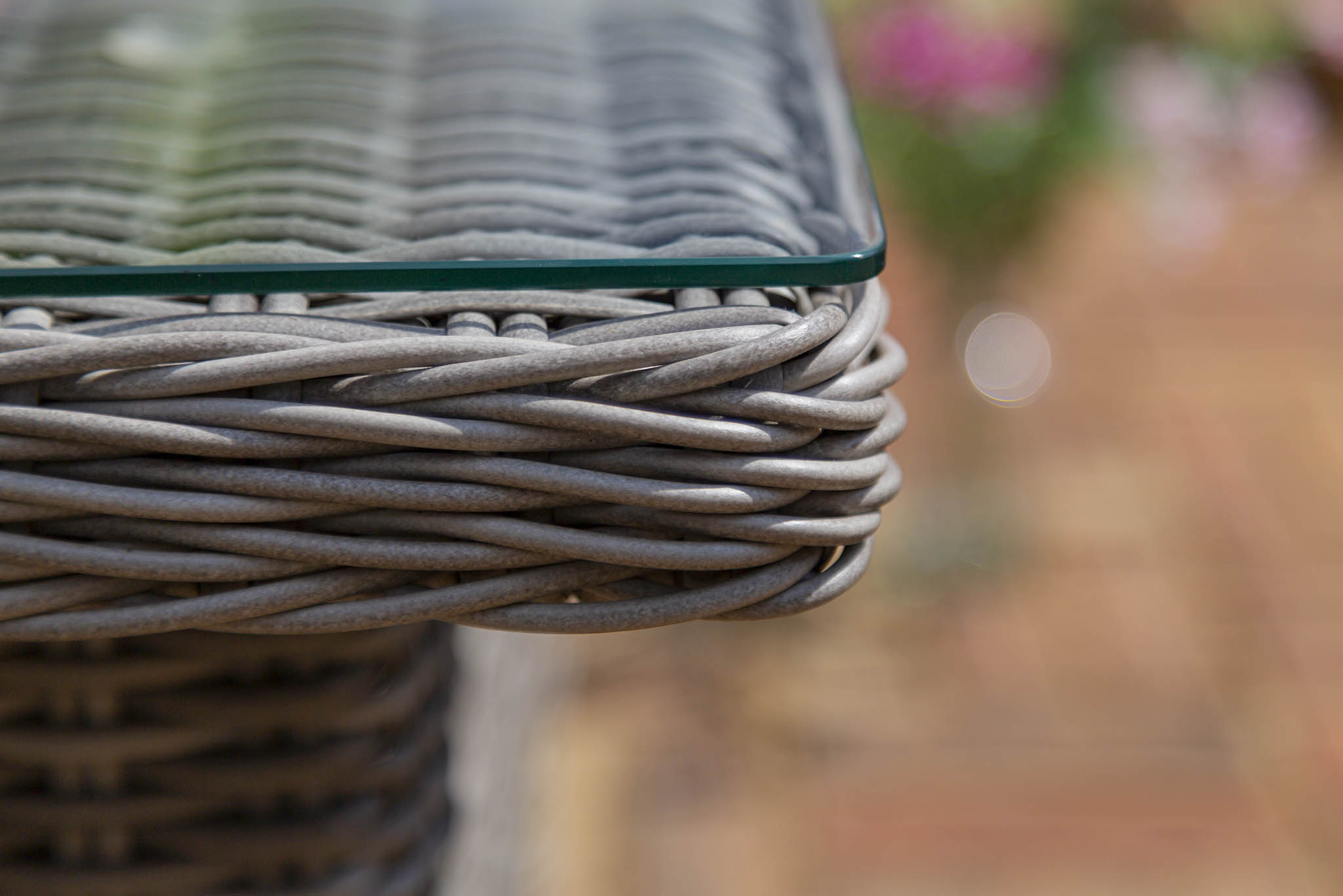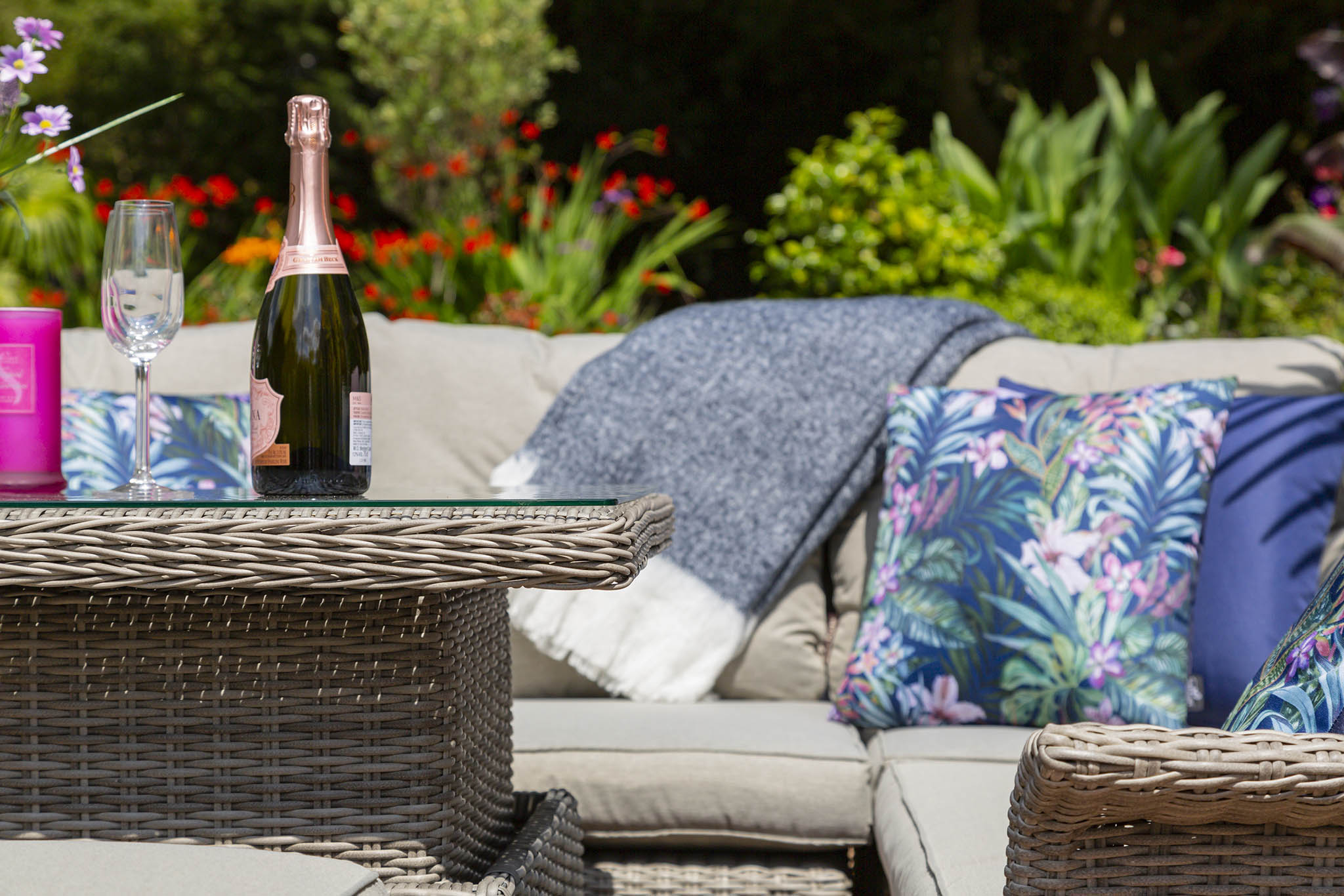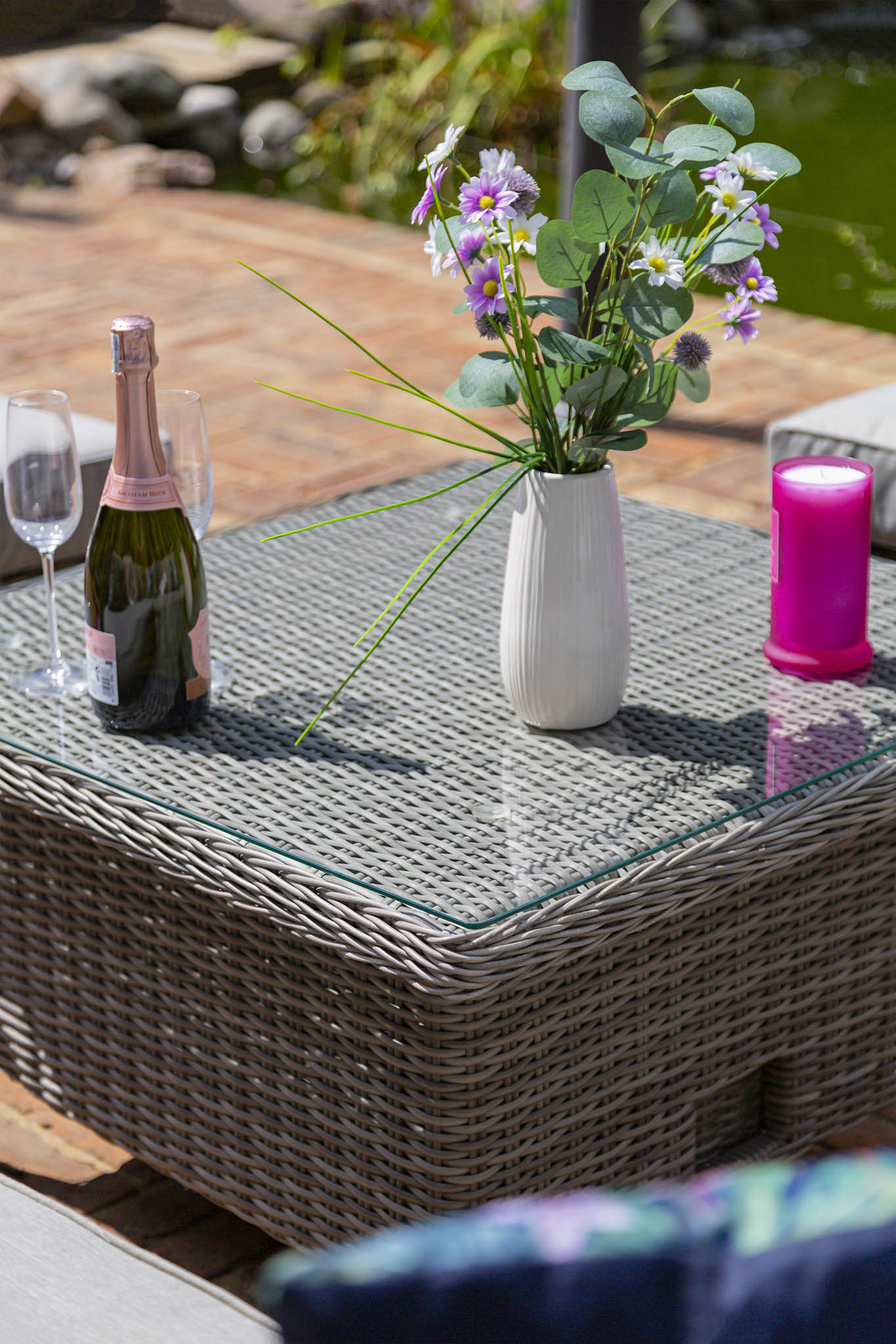 Flamingo Grey Rattan Compact Corner Sofa Set with Height Adjustable Table & 2 Footstools