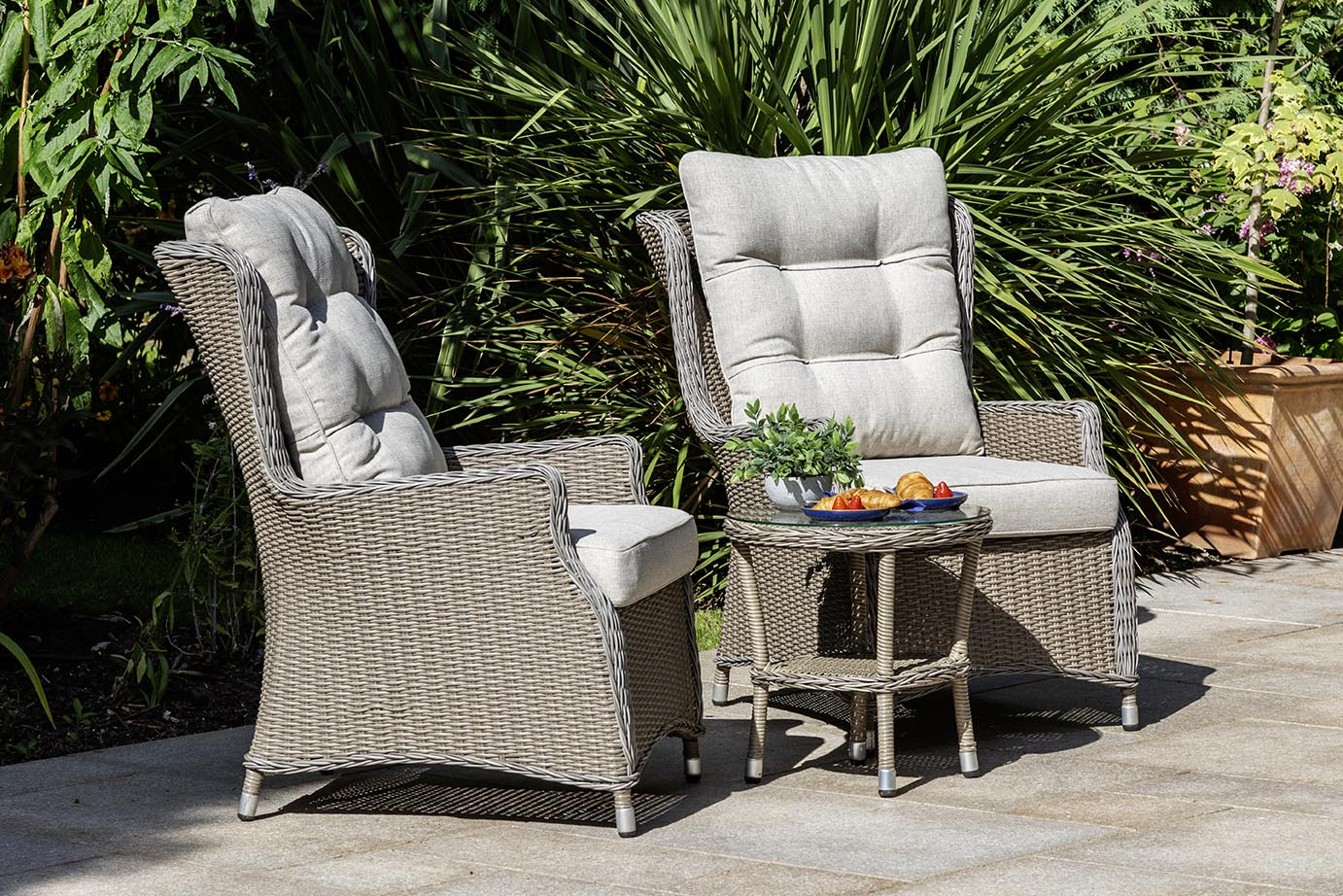 A perfect set for two, the Florence Lounge Set transforms even the smallest outdoor space into a private retreat – ideal for everything from sunny breakfasts to relaxed evenings.