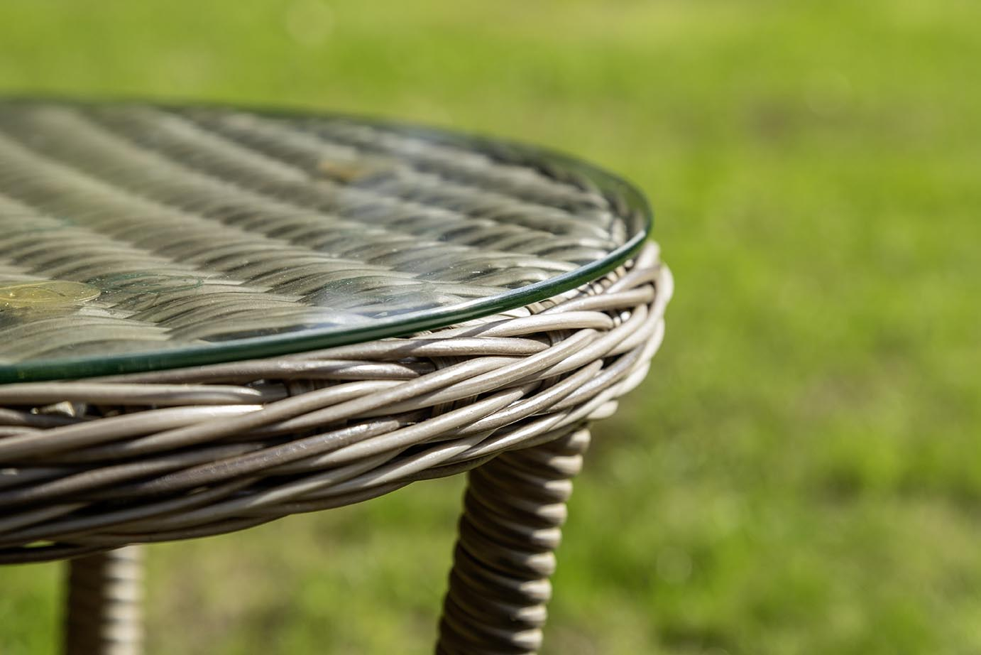 The 50cm x 50cm table features a 5mm tempered glass top for practicality and style, while the 9cm deep cushions provide exceptional comfort. A tailored protective cover completes the set, helping to keep it in prime condition all year round.