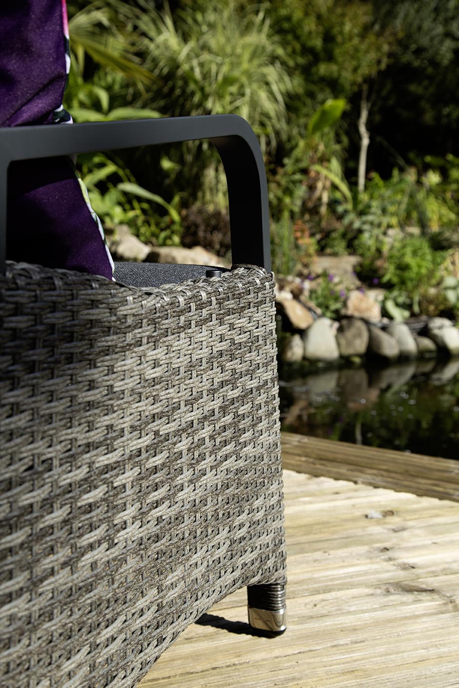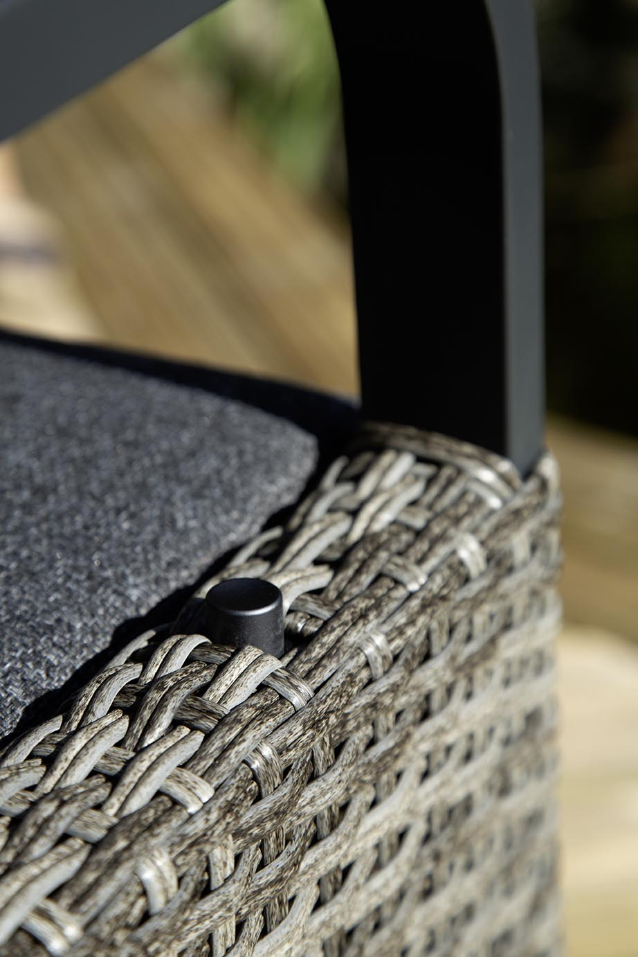 Handcrafted in a distinctive ridged rattan weave, the Marlowe Luxe is available in two sophisticated colourways — Natural and Noir Grey — ensuring it complements both contemporary and classic outdoor spaces. The generously cushioned reclining chairs feature an easy push-button mechanism, allowing you to adjust your seating with effortless comfort, whether you’re dining upright or reclining with a book and a glass of wine.