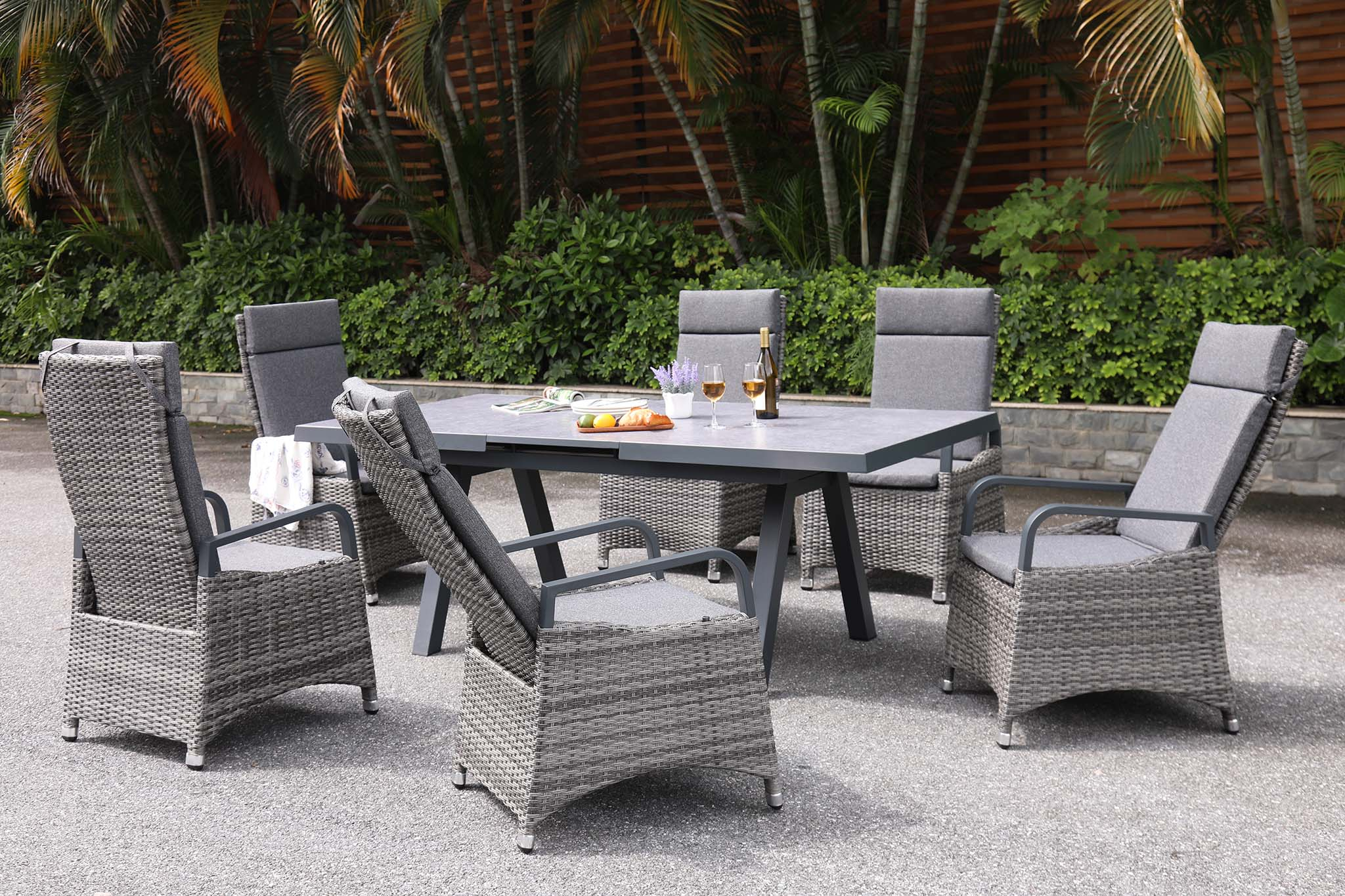 Marlowe Luxe 6 Seat Reclining Dining Set Rectangular Extending Table