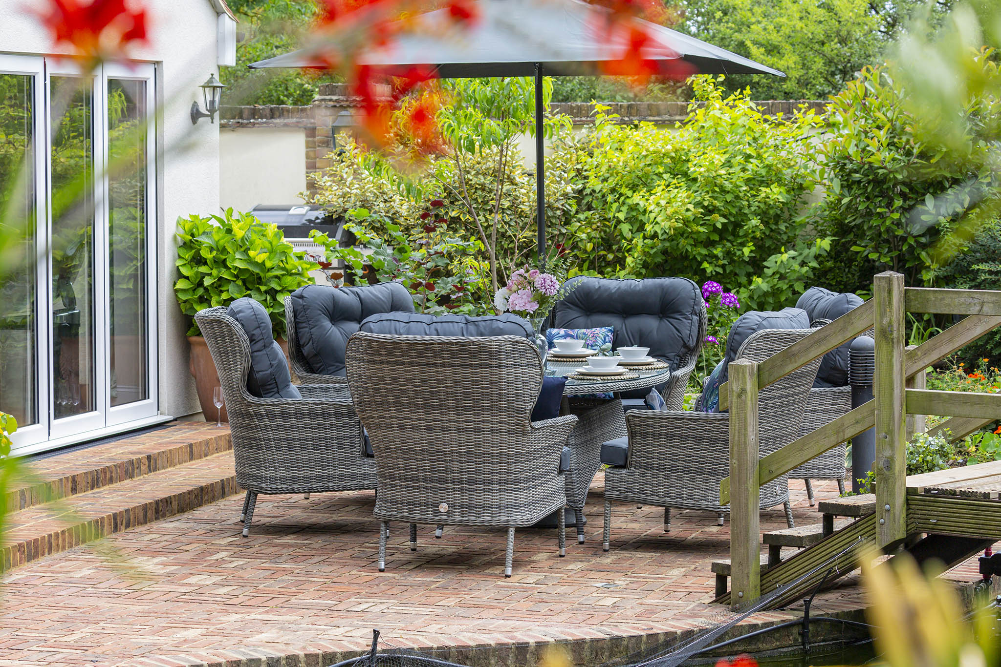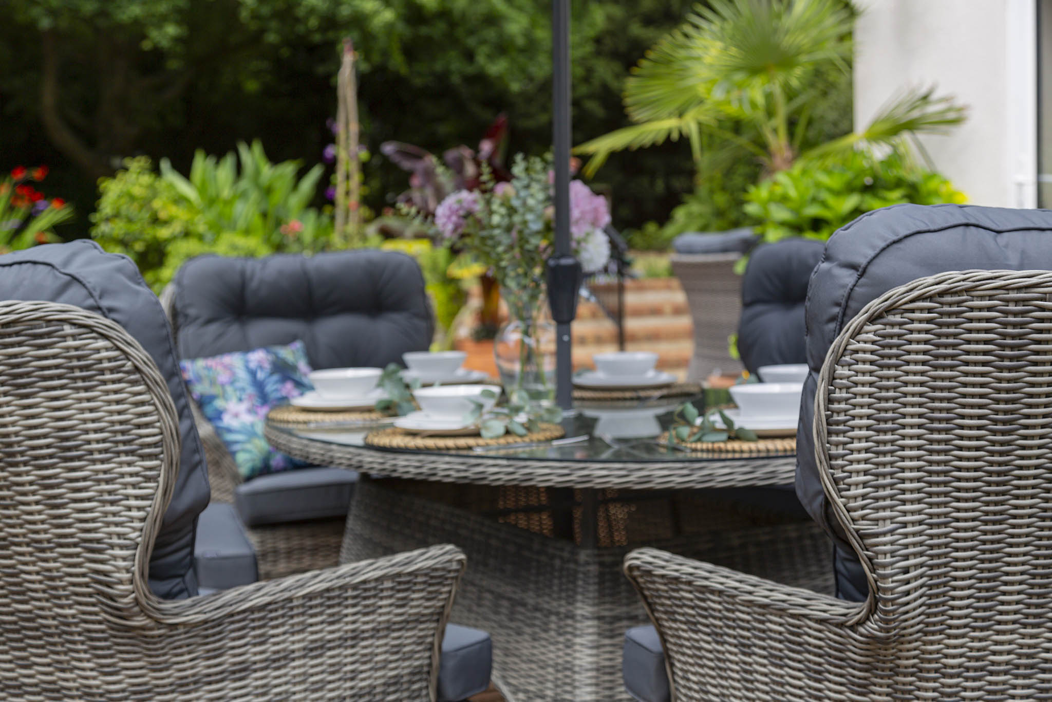 Mayberry 6 Rattan Garden Dining Chairs and Round Table Set