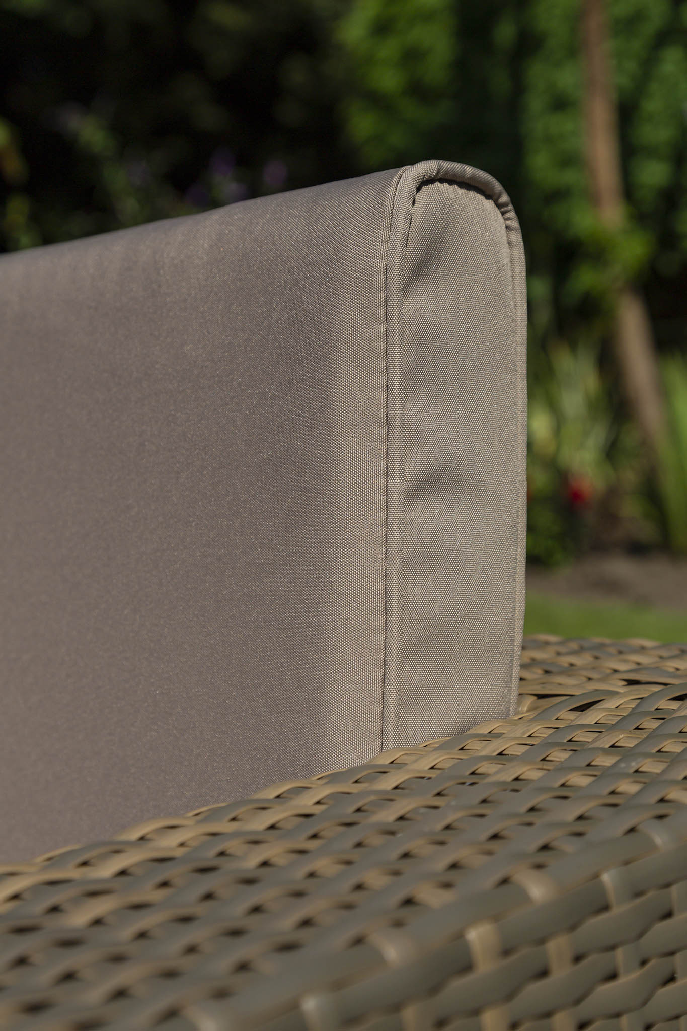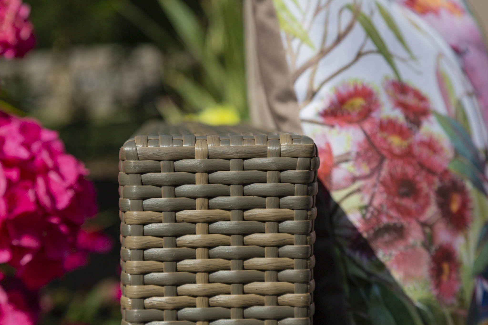 Manufactured from a handcrafted 7mm flat all-weather synthetic resin weave. Selected for durability, it's natural look and its resistance to UV light, meaning it can be left out in the sun and its colour won’t bleach or fade. Milan's rattan weave has been tested for outdoor use from -40°C to +40°C. High quality feet are fitted as standard to all garden furniture legs to add durability and provide excellent anti marking properties to garden patio, decking and conservatory.