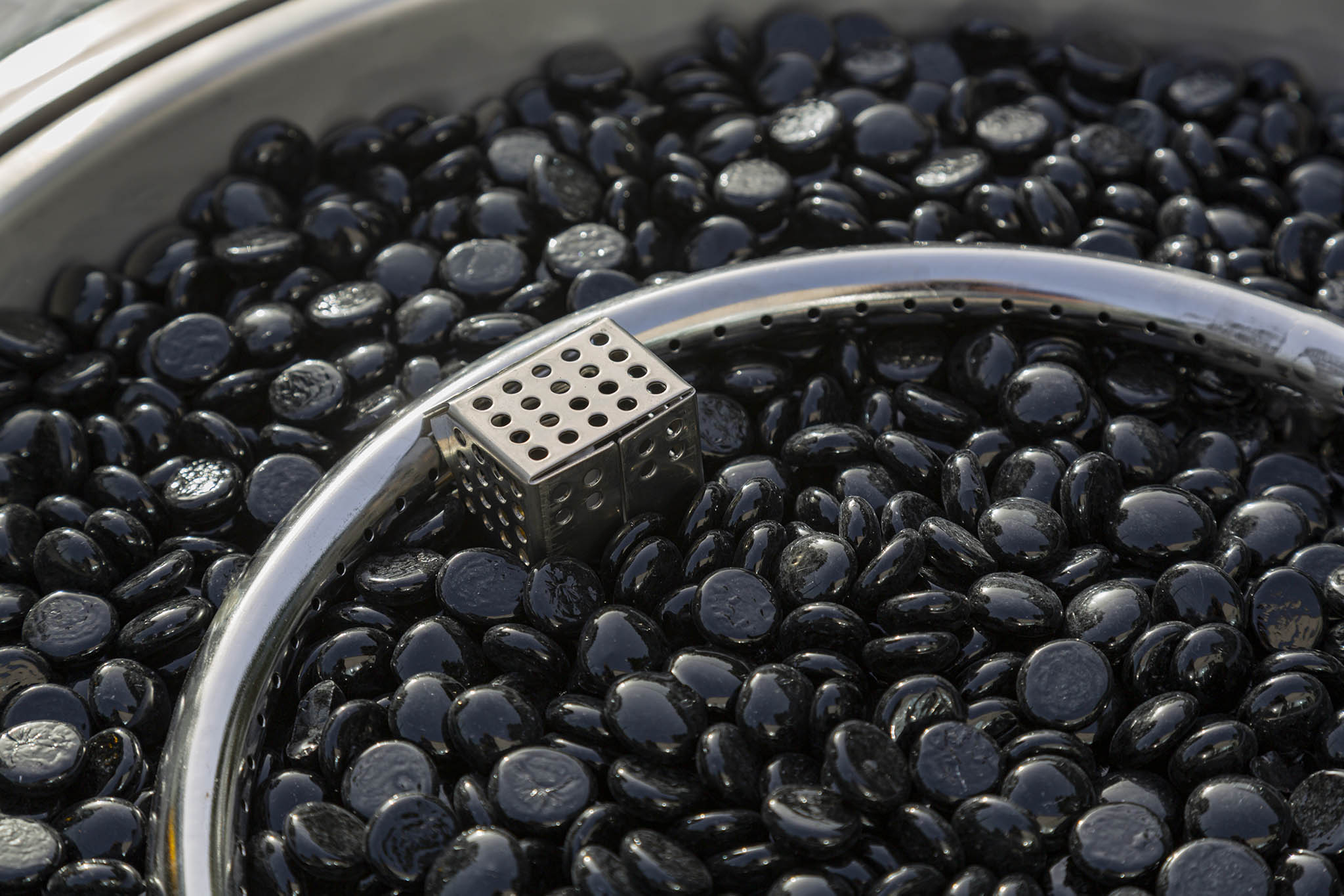 The tabletop is manufactured from tempered glass and a glass fire pit surround for extra safety. The fire pit, made from grade 304 stainless steel, provides over 50,000 BTU and approximately 6 hours of use on a high setting. It also features a glass Lazy Suzan cover that fits over the fire pit when not in use.