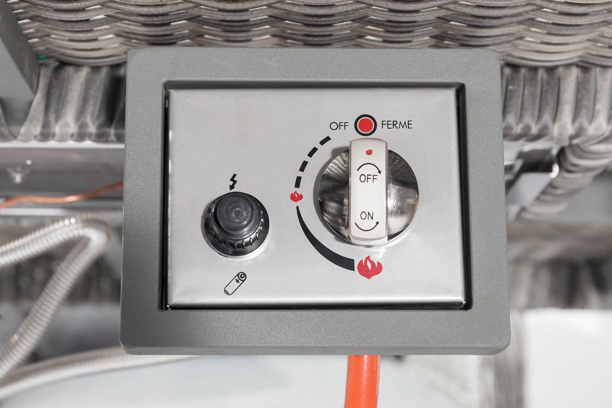 The fire pit is easy to control thanks to the control on the side of the table base. We suggest using a 5 kilo Green Gas Canister using Propane Gas for the best experience.