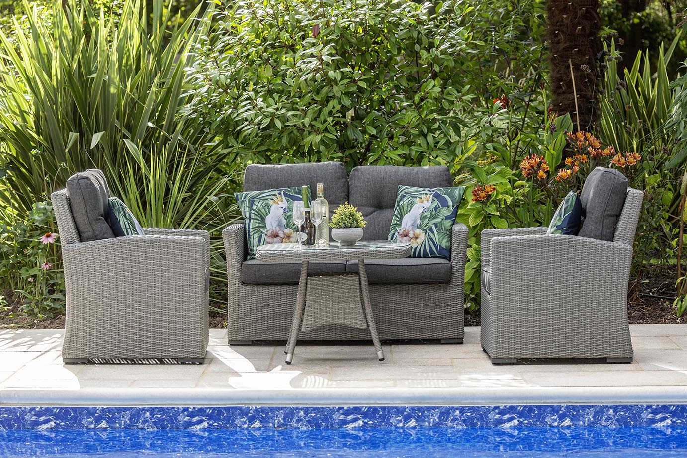 Perfect for intimate outdoor gatherings, the Savannah 2 Seat Sofa Set creates a welcoming space for conversation, coffee, or quiet relaxation. Its combination of deep cushions and refined design ensures your garden moments are both comfortable and stylish.