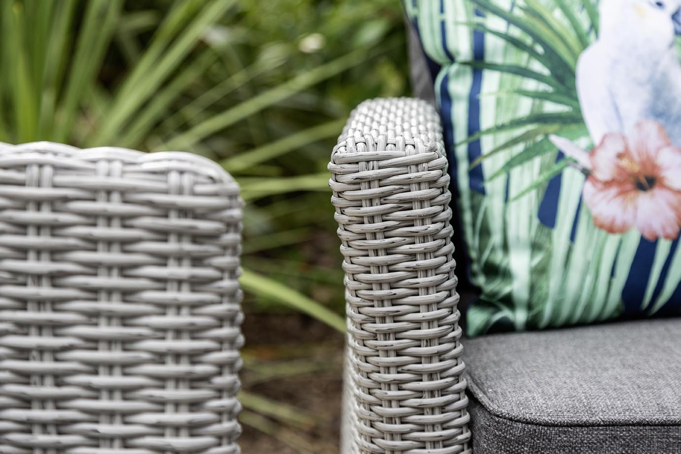 Crafted with a durable aluminium frame and hand-woven in half-round rattan, the Savannah set combines long-lasting strength with a natural, refined appearance. Available in natural or grey, it integrates seamlessly into a variety of outdoor settings.