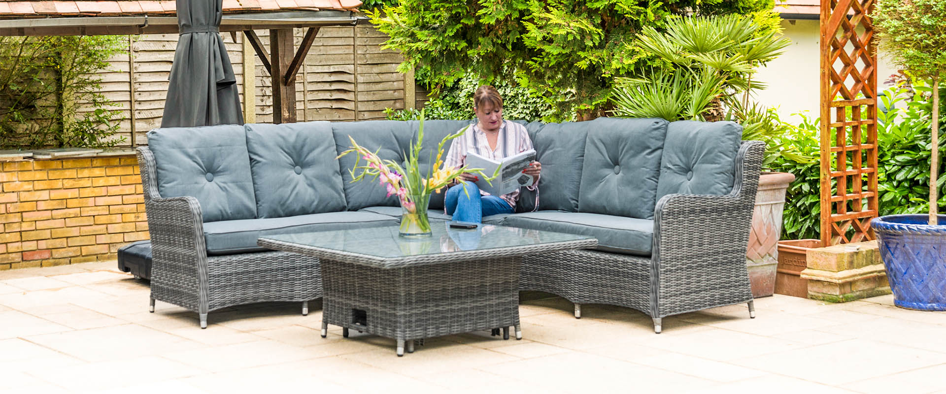 Seville Large Corner Rattan Height Adjustable Table Set with 2 Footstools